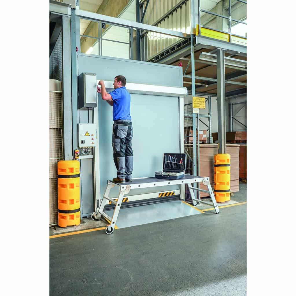 Extrem rutschsicher und komfortabel: Klappbare Arbeitsplattform mit R13 Plattformbelag.